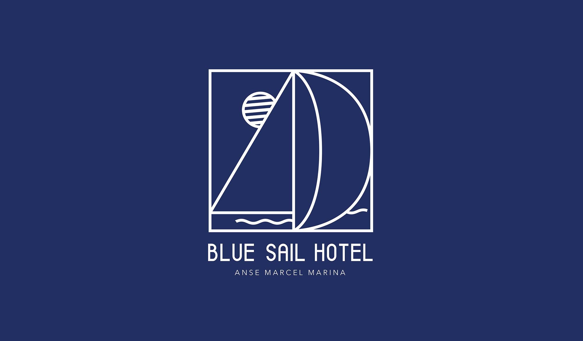 Création du logotype du Blue Sail Hotel, situé dans le port Anse Marina à Saint-Martin.